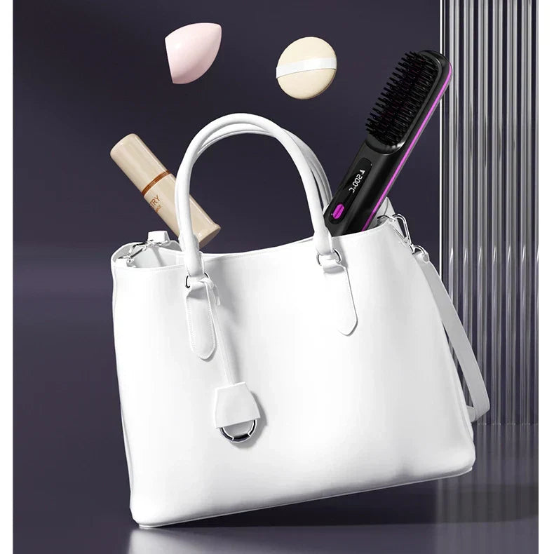 Portability and travel-friendly design make it a must-have for on-the-go styling. Compact and cordless, it is as small and light as a mobile phone, allowing you to grab it and go wherever you please. This straightening brush is your secret weapon for quick touch-ups, ensuring you always look your best, no matter where you are.